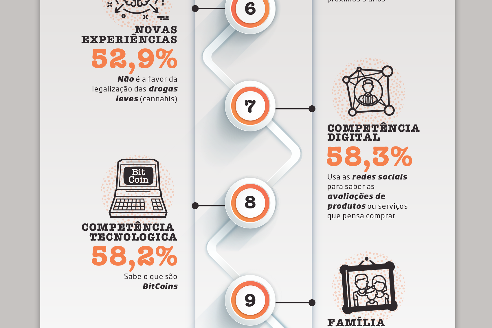 Foi fornecido um documento com os resultados mais importantes do estudo e pedido para, esquematizando os dados, criar uma infografia sequenciada, lógica, interessante e esclarecedora sobre o tema, seguindo o grafismo já apresentado do estudo completo.