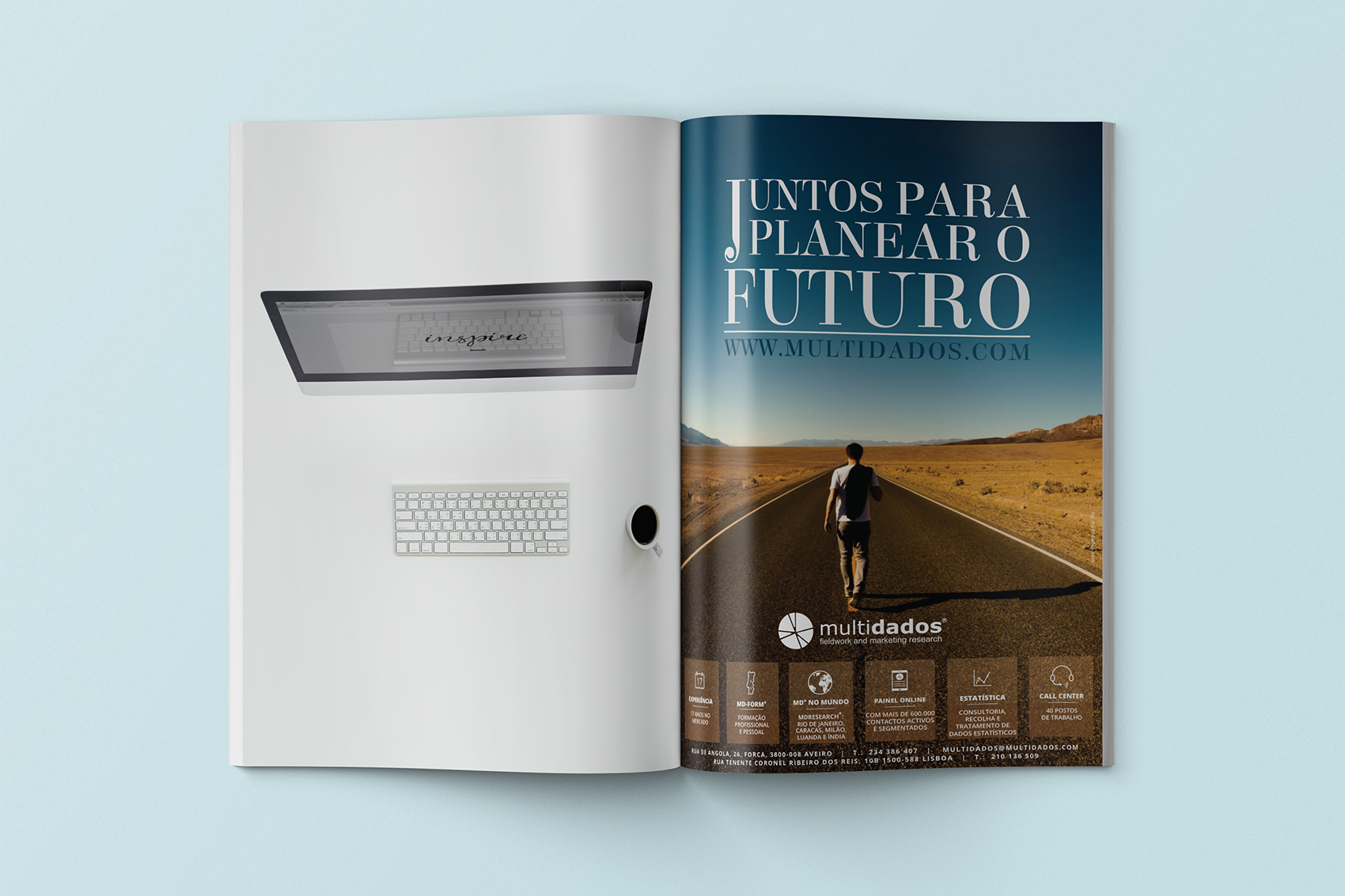 Para esta publicidade de página inteira, a principal mensagem a passar era do slogan da empresa: “Juntos para planear o futuro”, contextualizando o leitor sobre a experiência, os serviços, os contactos e as localidades de atividade da mesma.