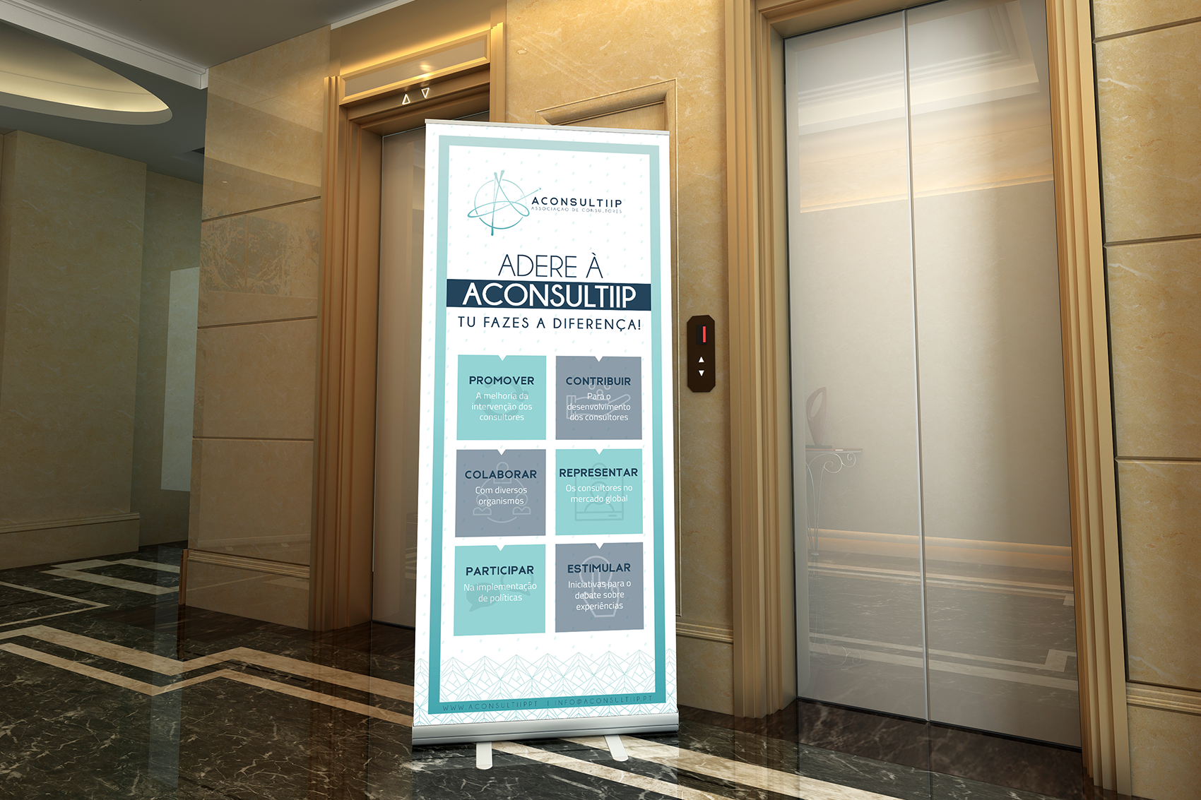 Objetivo do projeto: Criação de rollups institucionais para publicicdade da marca Aconsultiip.