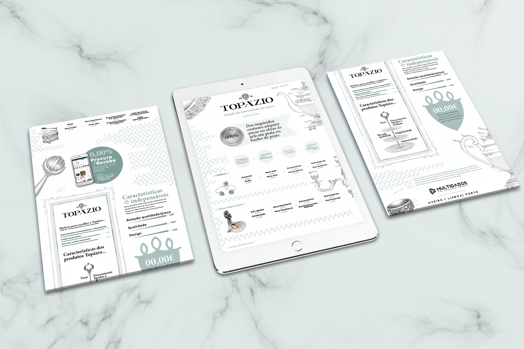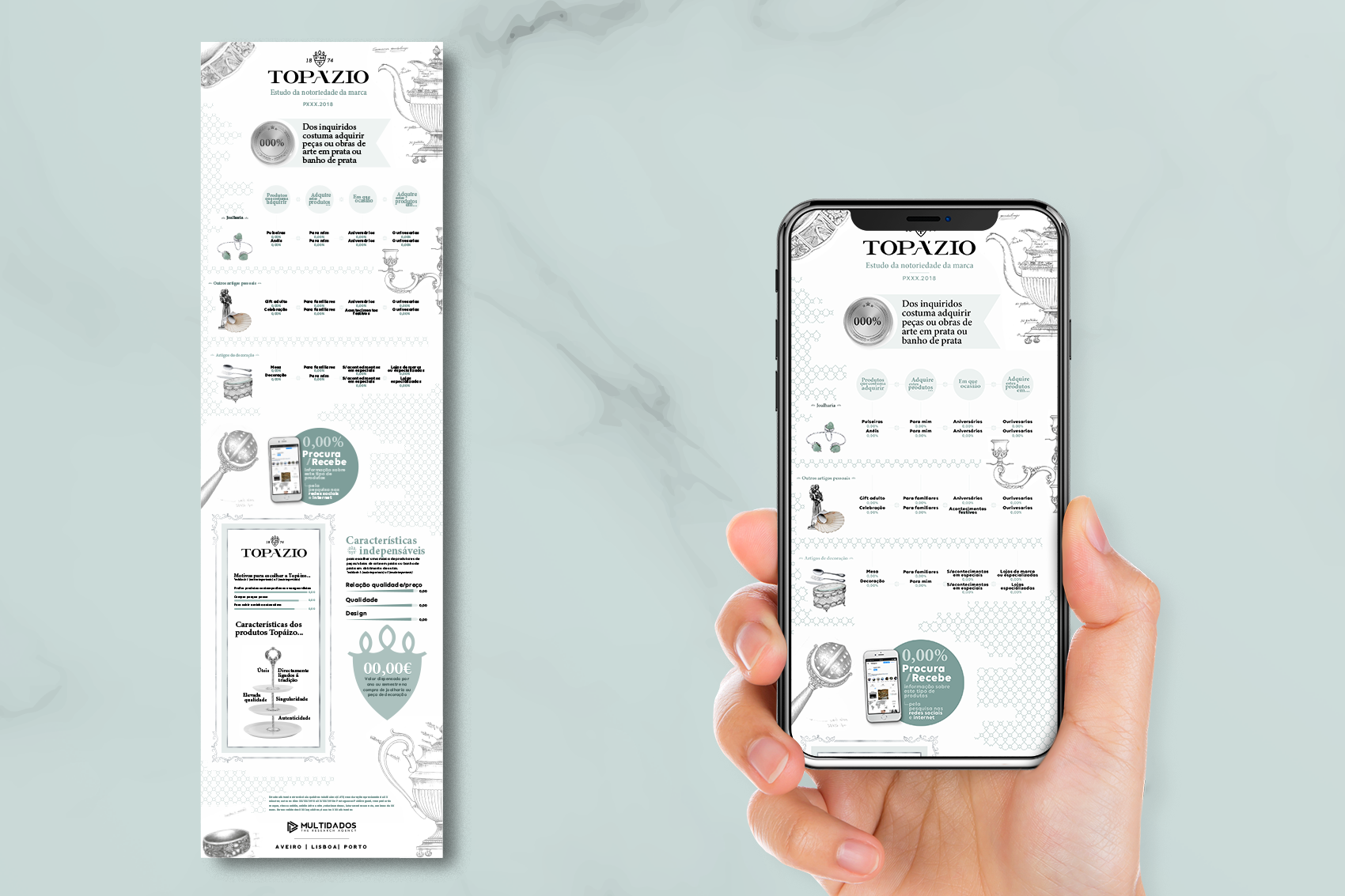Objetivo do projeto: Criação de infográfico com base no estudo de mercado sobre a perceção da marca Topázio.