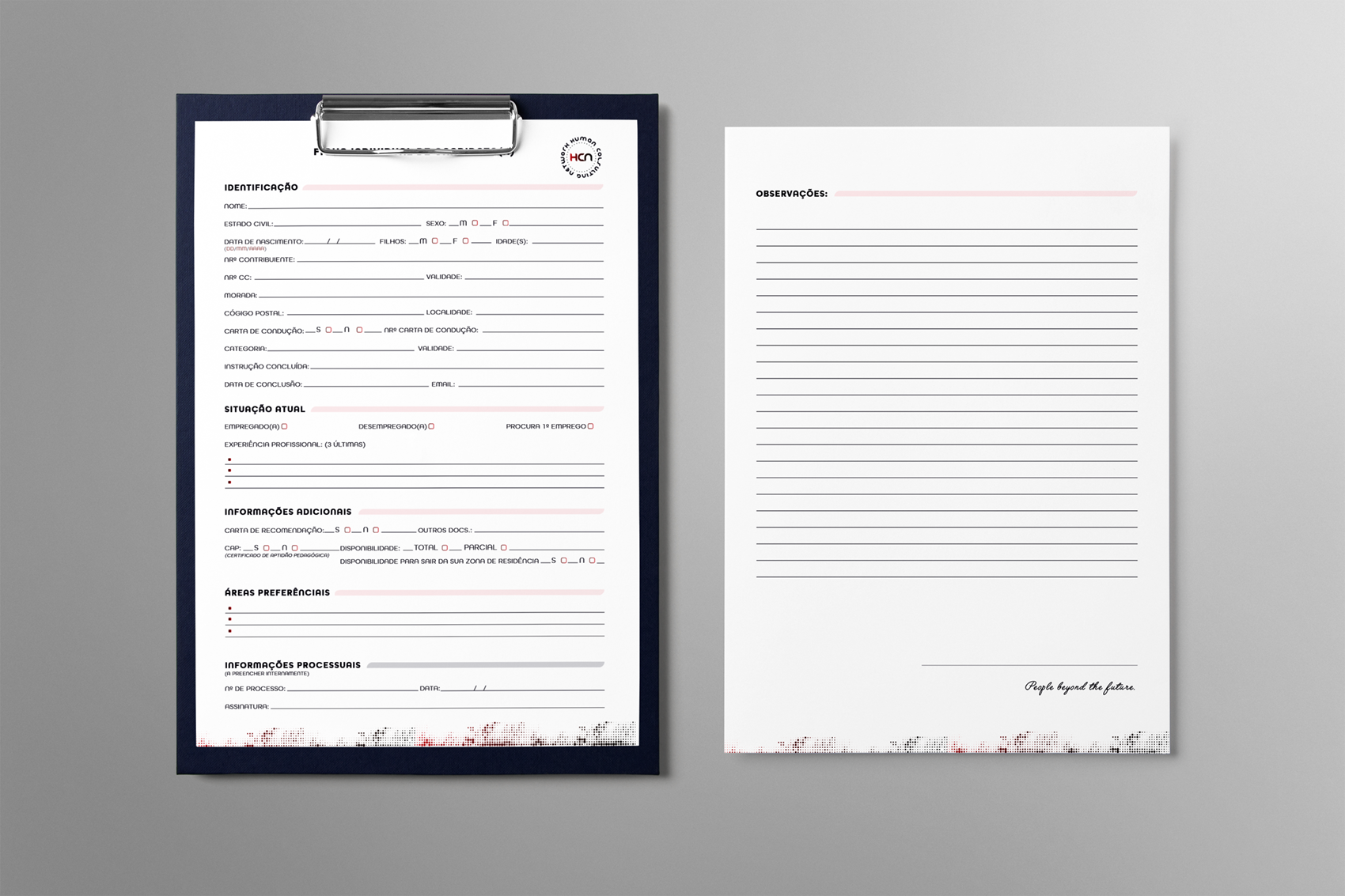 Foi referido como importante a cor azul, e a forma circular ou a inserção de um globo. Era pretendido uma imagem moderna, atual, mas também séria e de compromisso que ligasse com o fato de ser uma empresa na área dos recursos humanos.