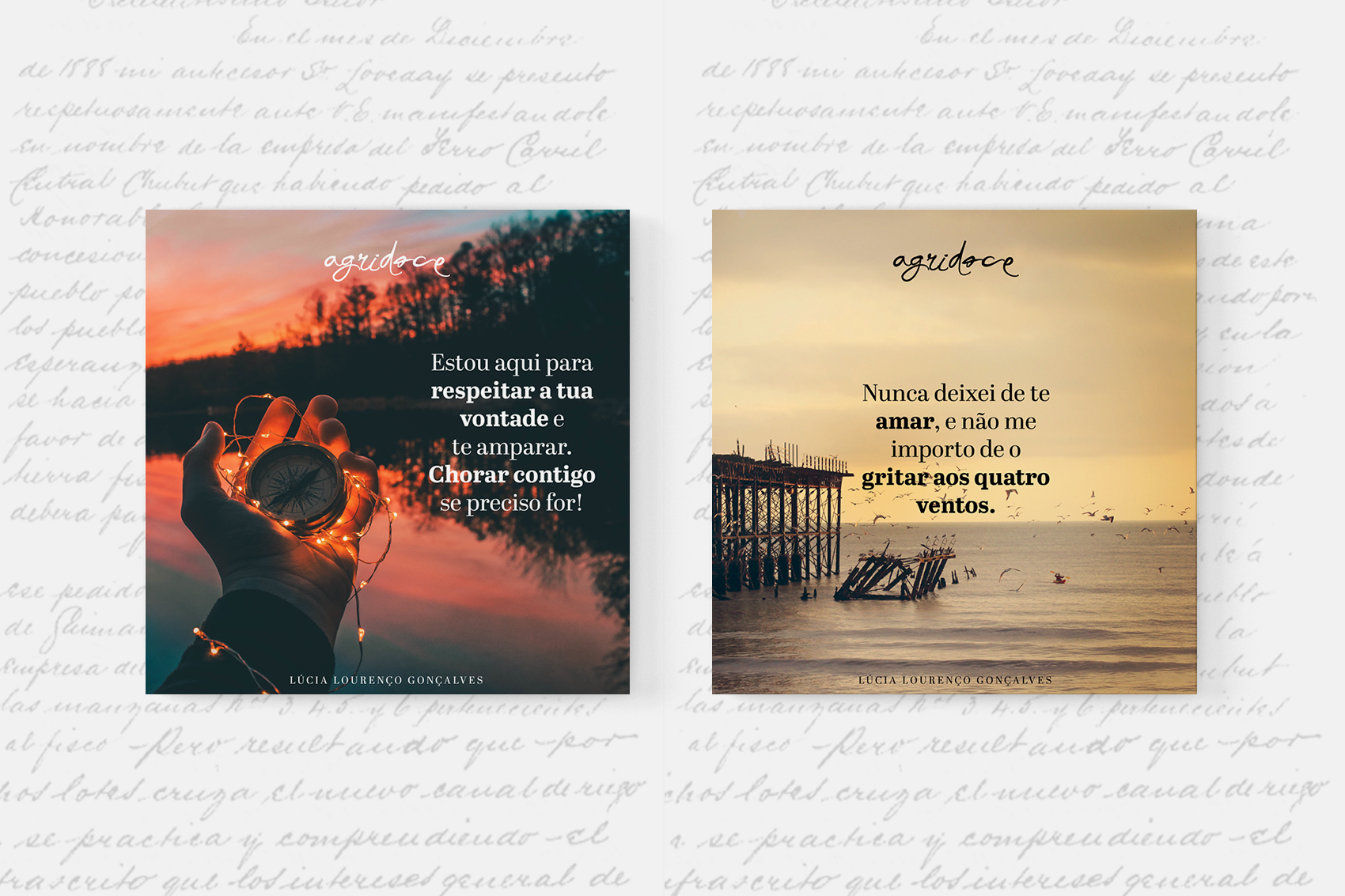 Objetivo do projeto:Criação de imagens promocionais com trechos do livro Agridoce, para as suas redes sociais (Facebook e Instagram).