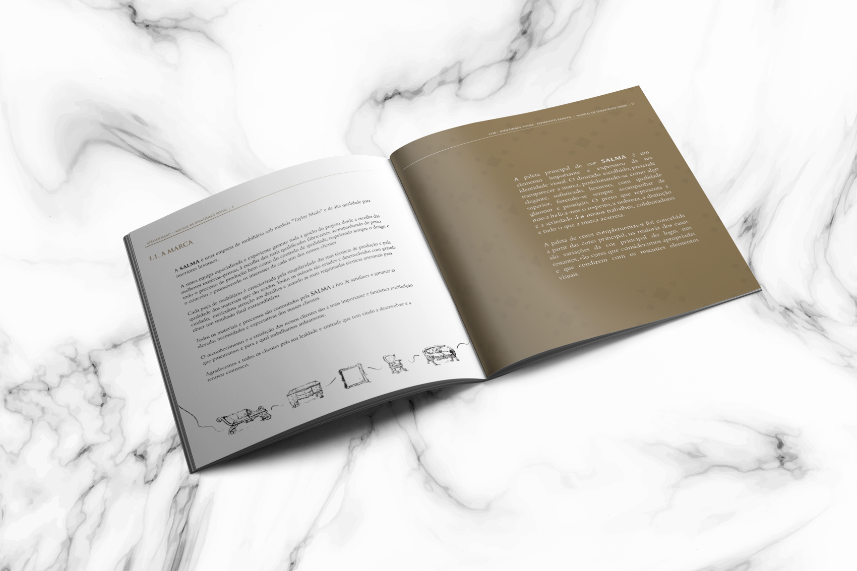 Não tendo construído o logotipo e definido os elementos gráficos inicias da marca foi pedido que, mantendo o trabalho já realizado, construísse catálogos para as diversas coleções da marca bem como o catálogo principal. Este teria de fazer ligação com os restantes catálogos, mas transmitir a generalidade as linhas da marca e passar a ideia de qualidade e singularidade.