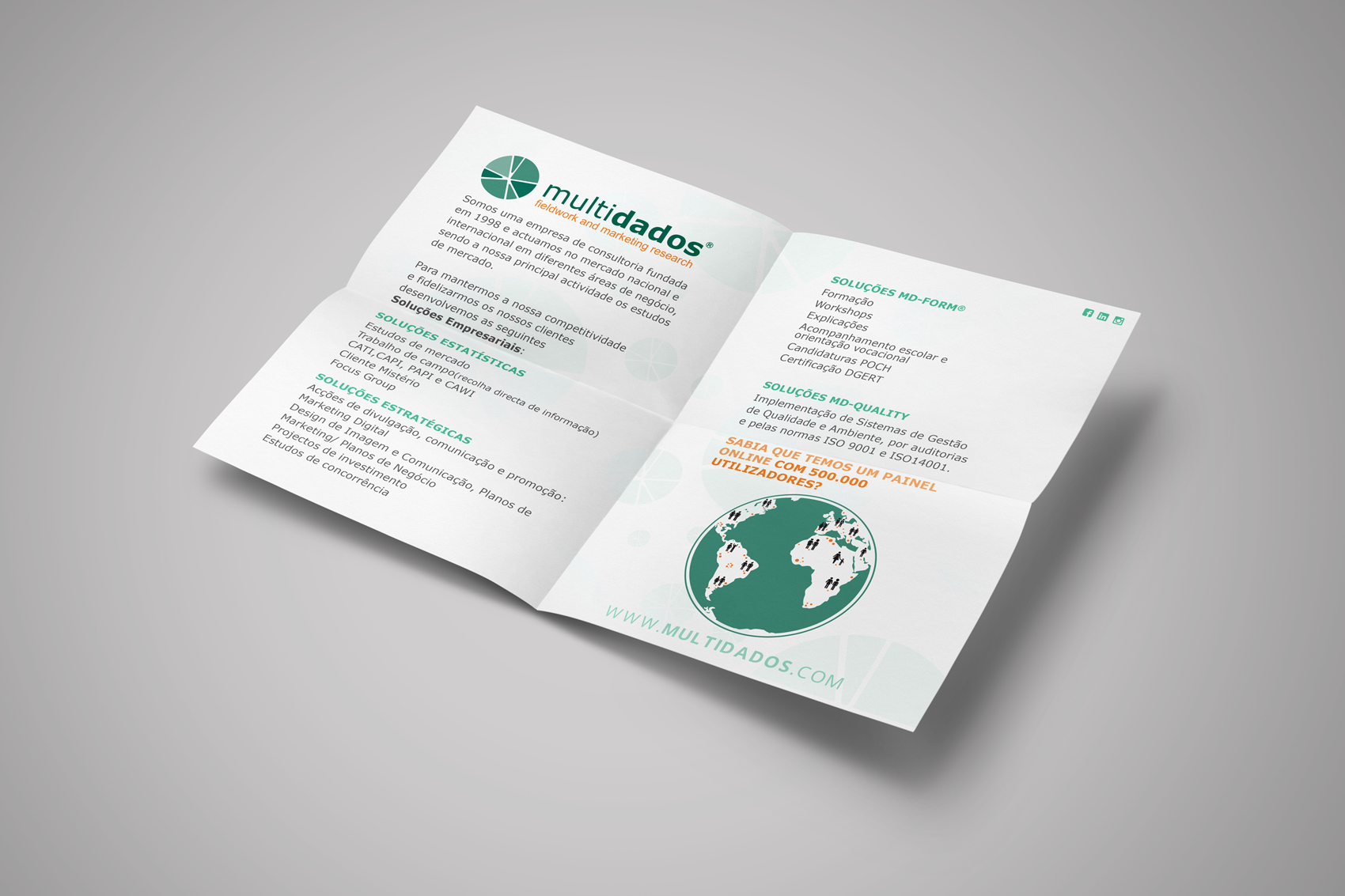 Foi solicitada a realização de um suporte promocional que representasse a empresa e os seus serviços de uma forma original, mantendo a ligação à marca (cores, grafismo...).